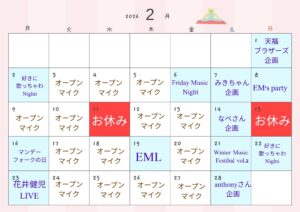 2026年2月イベント詳細 健康 X Facebook コピー 2025.12.10 「私はロボットではありません」と表示されカレンダーが見れない場合 目次 イベント予告お休み イベント予告 1日 2日 6日 7日 8日 14日 16日 19日 21日 22日 23日 28日 お休み 11日 15日